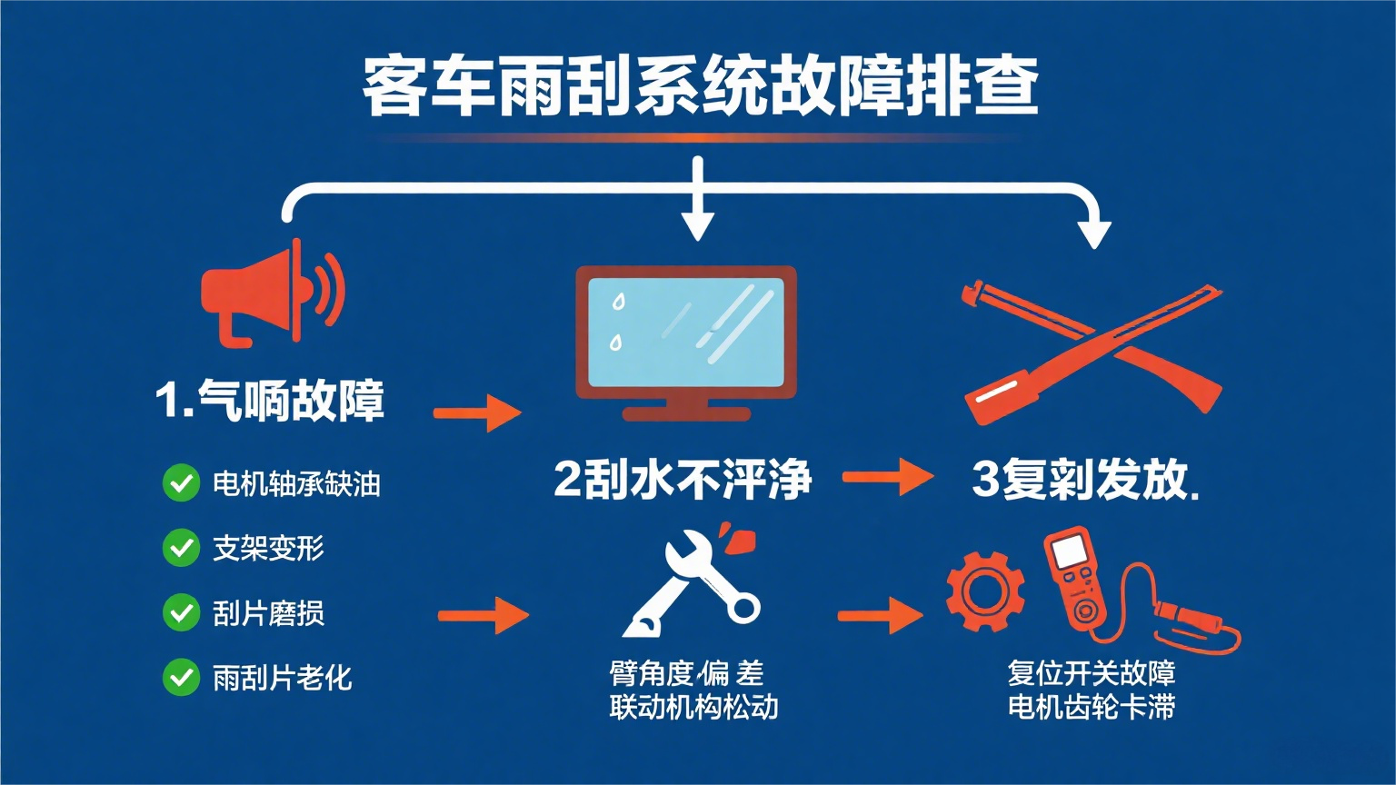 Q:客车挡风玻璃雨刮器电机重置调整指南