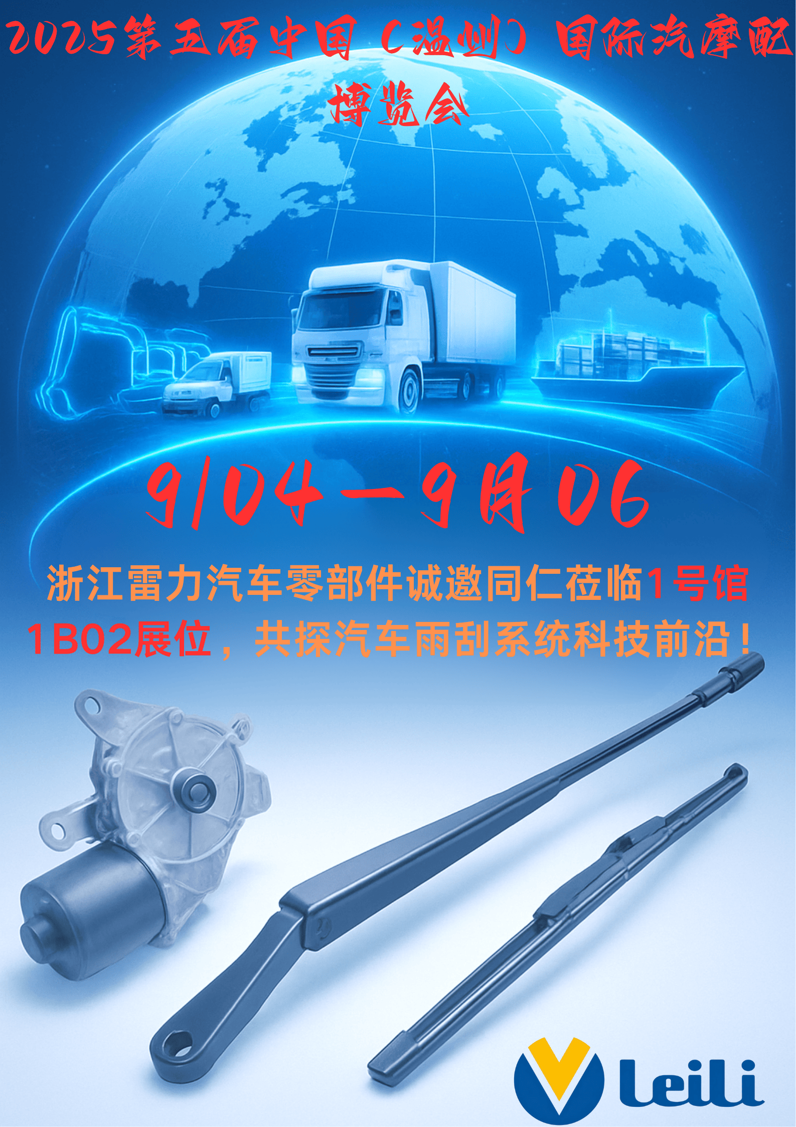 2025第五届中国(温州)国际汽摩配博览会!浙江雷力汽车零部件诚邀莅临1号馆1B02,共探汽车雨刮总成科技前沿!