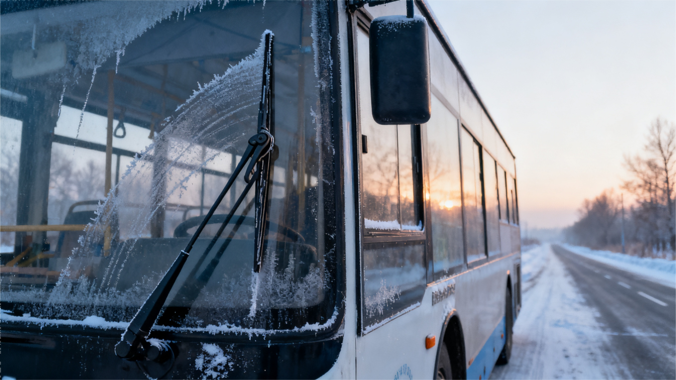 某北方高寒地区公交车在使用雷力雨刮臂的一条线路上,每日清晨常有冰霜覆盖挡风玻璃,雷力雨刮臂经人工清理冰霜后仍能正常启动、刮拭,无扭曲或弹性损失,使用 2 年后只进行了常规保养,没有报废/变形现象。